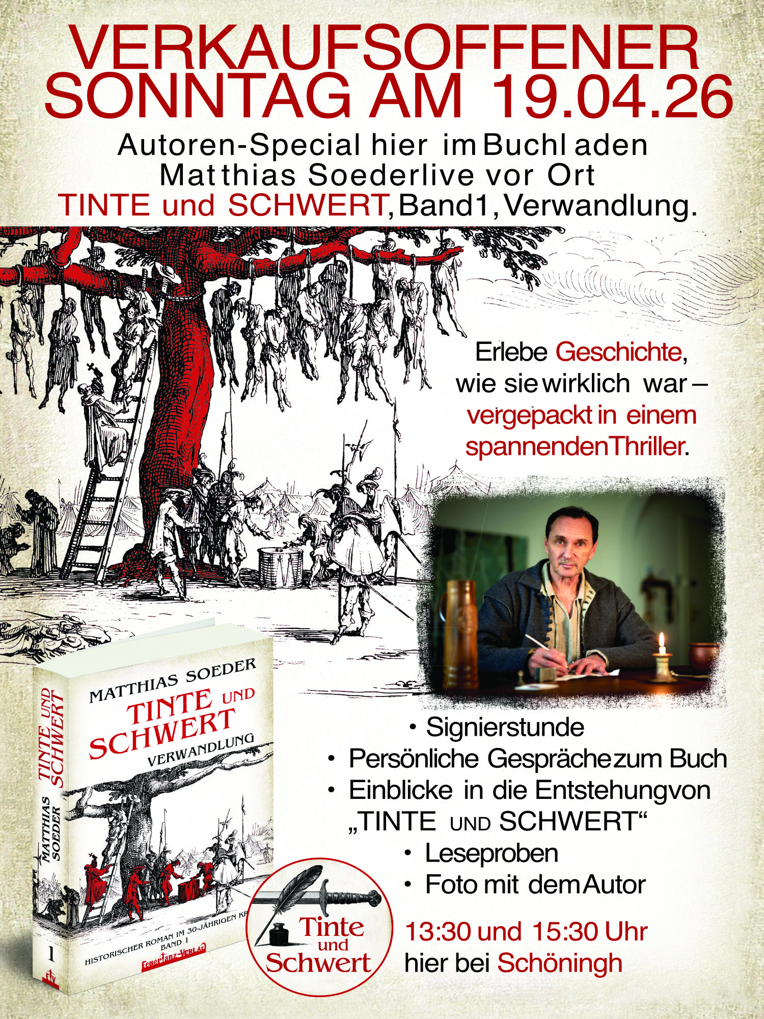 Am 19.04.2026 bin ich im Rahmen des verkaufsoffenen Sonntags bei Schöningh vor Ort.